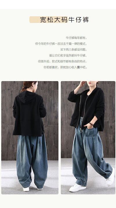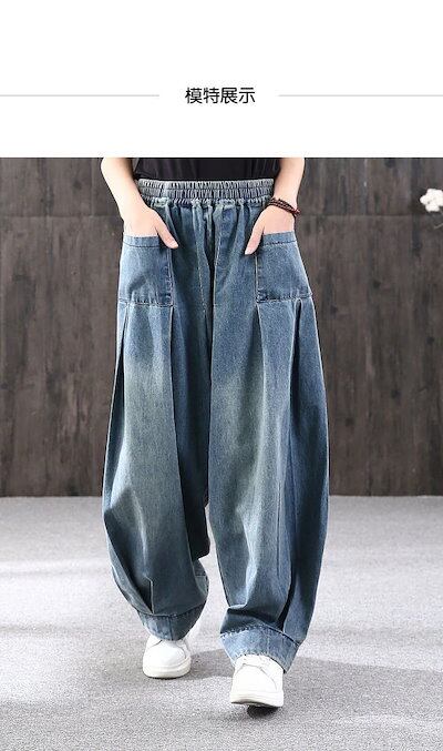 【幸運】ルーズラージサイズハーレムジーンズレディース24ファットmmパンツオールマッチカジュアルブルマ466