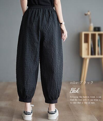 着痩せ 配色 バルーンパンツ 春夏 コットンリネン 大きいサイズ 総ゴム ロング サルエルパンツ ストレスフリー 丸いシルエット ギャザー パンツ レディース チェックパンツ ポケット ワイド イージ