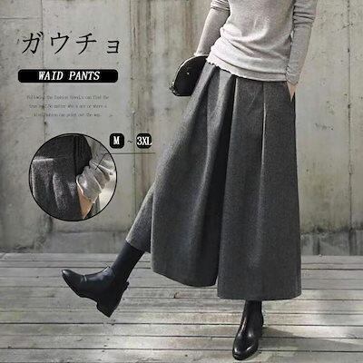 ウール アンクルパンツ 美脚 ガウチョパンツ 秋冬 レディース 九分丈 大きいサイズ 体型カバー ワイド スカン ゆったり 冬 スカーチョ 細見え タック 保温 ワイドパンツ 暖かい ボリューム 防寒