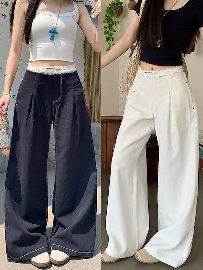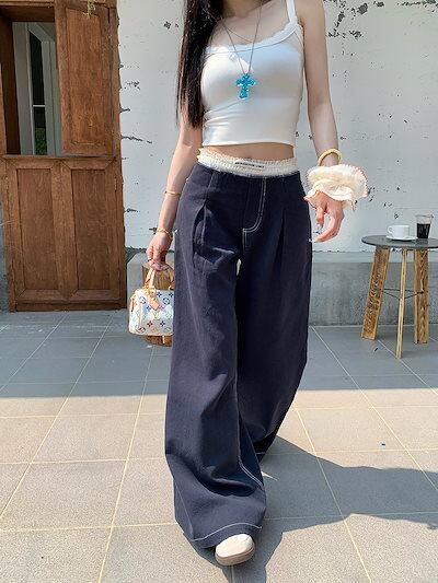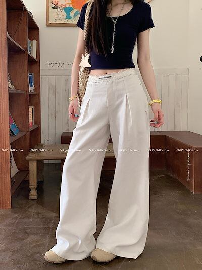2025春夏 スタイルアップ効果up モップパンツ脚長ズボン美脚 ハイウエストレディース 韓国 レッグカジュアル スリムボトムス ファッション色っぽ女っぽカジュアルきれいめ大人っぽ上品お姉さんゆったり | Jeannede ジャンヌデ
