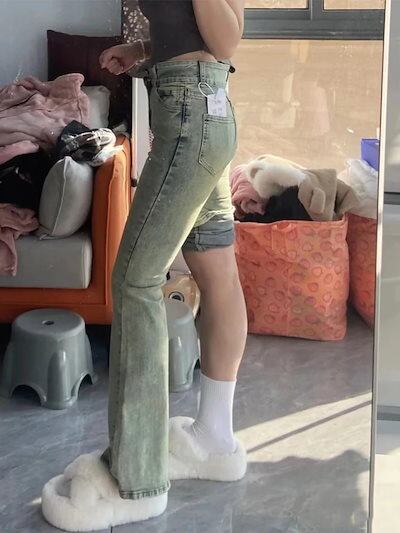 レトロレトロレトロなマイクロフレアジーンズ女性の新型ビッグサイズ太mmハイウエストスリム梨型ボディパンツデニムボトムス 23 レディース