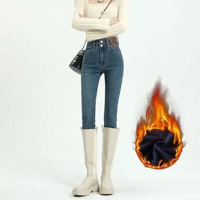 3月新品(大セール)デニムパンツ 裏起毛 スキニーパンツ レディース ストレッチ あったかパンツ 厚手 防寒 暖かい ジーンズ 美脚 保温 スキニーデニム 大きいサイズ ハイウェスト スリム 細身 タ