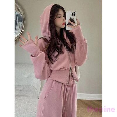 超人気 ジャージ 上下セット レディース スウェット セットアップ フード付き ロングパンツスリムスポーツルームウェアスエット部屋着