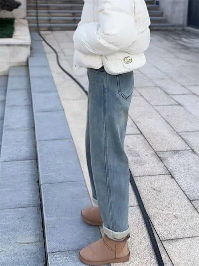 裏起毛 デニムパンツ レディース テーパード 秋冬 ストレート パンツ スリム ボトムス 裏ボア 防寒 寒さ対策 中厚手 あったか ズボン 10分丈 ロング シンプル 伸縮性 防寒パンツ 暖パン ゆる
