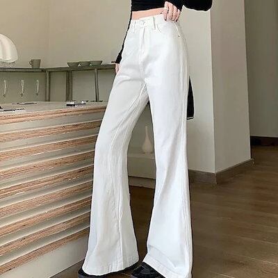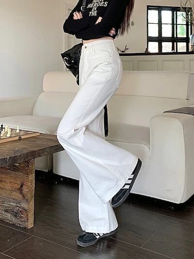 24パンツ デニム ジーンズ ワイド ストレート ハイウエスト 脚長効果 美脚効果 細見え 白 ホワイト カジュアル おしゃれ かわいい シンプル 韓国ファッション レディース お出かけ