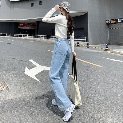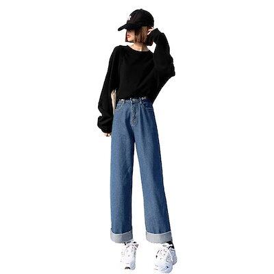 ジーパンレディース ハイウエスト ストレートシリンダ ゆとりがある やせて見える ワイドパンツ スキニージーンズ ジーパン