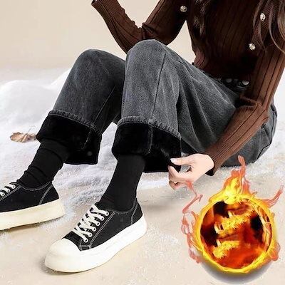 裏起毛 厚手 ハイウエスト レディース デニム ワイドパンツ 学生 百掛け 保温 ストレートパンツ