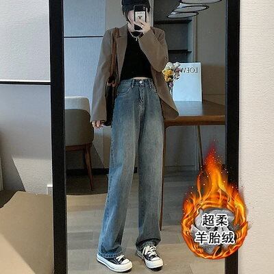 デニムボトムス レディース モップパンツ ジョガーパンツ ストレートパンツ 裏起毛 ワイドパンツ