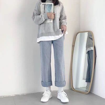 デニムパンツ デニムボトムスショートパンツ ハイウエスト ワイドパンツ ストレート おしゃれ 百掛け ゆったり 着痩せ 伸縮性のあるウエスト シンプル パンツレディース