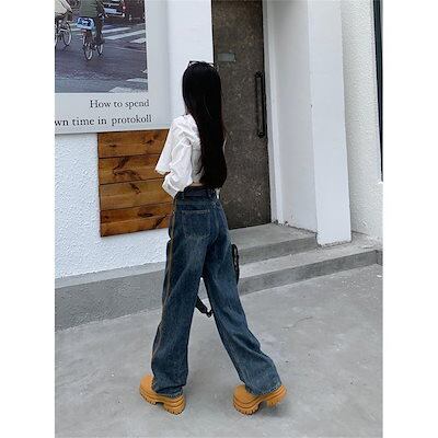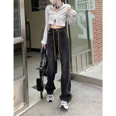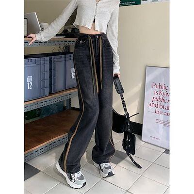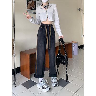 ワイドパンツ 春 夏 秋 レディース ボトムス ジーンズ デニムパンツ ストレート ジーパン ハイウエスト デニムズボン ロング丈 ゆったり 着痩せ 夏
