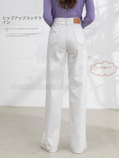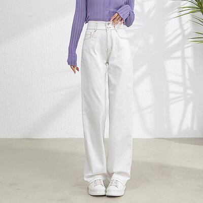 2025 春夏新作 ストレートジーンズ レディース 韓国製 ソフト 薄手 細身 ワイドパンツ