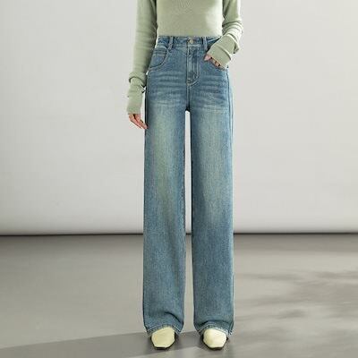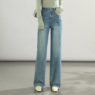 ヴィンテージジーンズレディース2025春夏新作韓国版伸縮性ハイウエストストレートパンツワイドパンツ