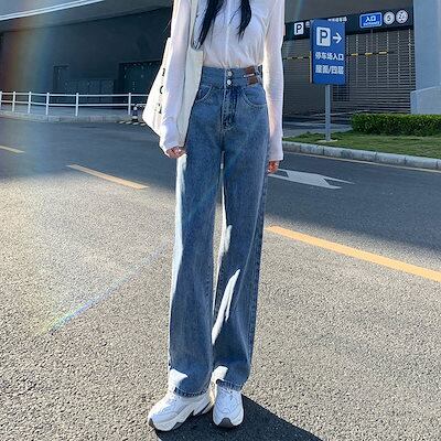 2025新作 韓国 ダメージデニムパンツハイウエス モップパンツトパンツ ト フレ百掛けジーンズ レディース 着痩せ ジーンズ テ一ラ一ドジャケット ダメージデニムパンツ スキニーパンツ