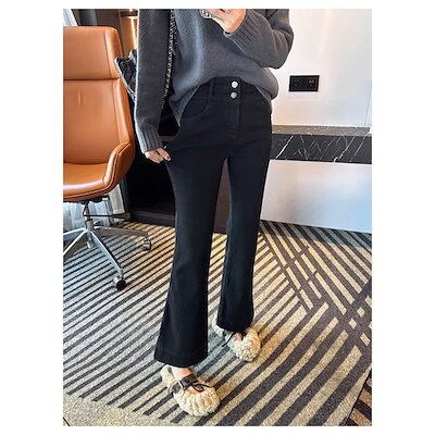 ストレッチマイクロフレアージーンズ レディース 大きいサイズ ハイウエストストレート ナインミニットパンツ