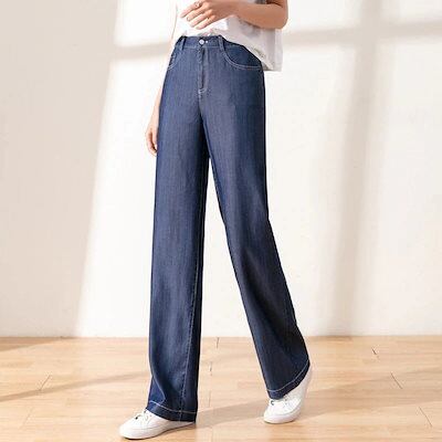 メガ割 テンセル ジーンズ レディース ワイドレッグ 新作 薄手 ゆったり 薄手 ハイウエスト アイスシルク ストレートレッグ パンツ福袋