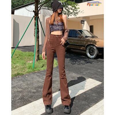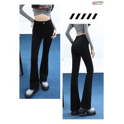 デニムパンツ フレアパンツ レディース デニム ボトムス おしゃれ きれいめ 薄手 シンプル ストレッチ 伸縮性 黒
