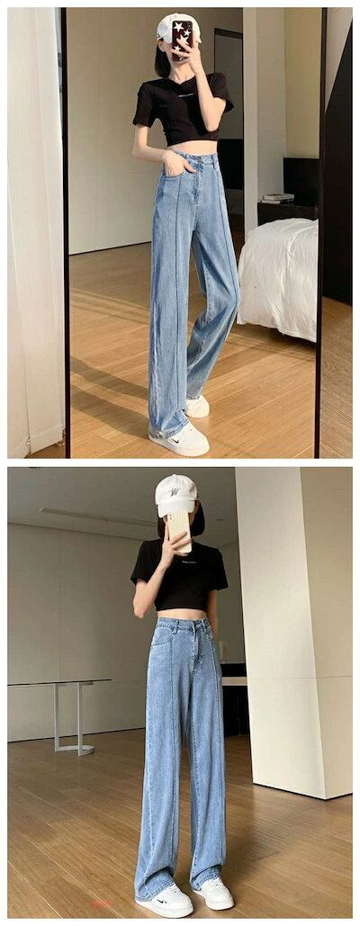 ワイドパンツ デニム 接触冷感 レディース パンツ 夏 春 冷感 ワイド ストレッチ ストレート ガチョウパンツ 吸汗 速乾 通気 UVカット 涼しい ハイウエスト ポケット ゆったり 無地 楽ちん