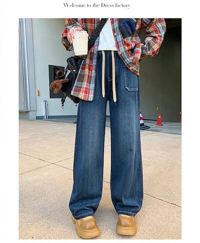 デニムパンツ レディース パンツ 春 イージーワイドパンツ ストレートパンツ ワイドパンツ ボトムス ウエストゴム デニム パンツ ストレッチ ロングパンツ ロング丈 春 夏 秋 リラックス 無地 シ