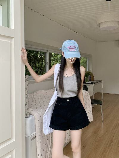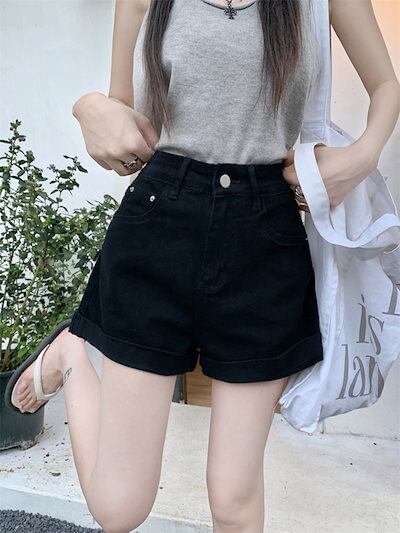 2024 春夏パンツ ショート丈 デニム ジーンズ ワイド ハイウエスト 美脚効果 脚長効果 細見え 夏 白 黒 おしゃれ かわいい 韓国ファッション レディース お出かけ