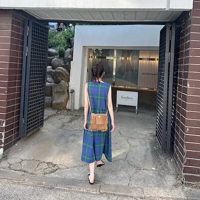 2024夏 韓国セットアップ ジャンパースカート ジャンスカ ミモレ丈 Vネック ノースリーブ Aライン チェック柄 ゆったり 細見え 夏 青 緑 おしゃれ かわいい 韓国ファッション レディース お