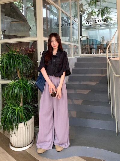 2024 春夏パンツ ロング丈 ワイド ストレート ハイウエスト 美脚効果 脚長効果 細見え 夏 白 黒 紫 おしゃれ かわいい 韓国ファッション レディース お出かけ
