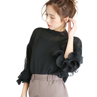 メガ割 大人気セッ24 新作 シャツ レディース感 長袖 ランタン袖 メッシュ シフォン セミロングトップス 体型カバー着痩せ おしゃれ気質シャツ今っぽシアーシャツ