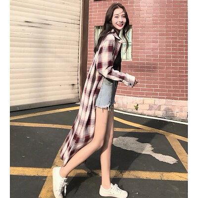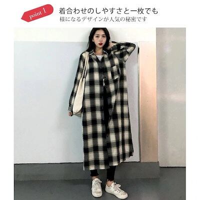 メガ割 25新作 シャツワンピース グレンチェック 長袖 ミモレ丈 ゆったり オーバーサイズ カジュアル レディー
