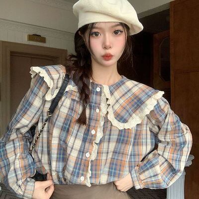 シャツ ブラウス レディース トップスUVカットラブリータートルネックレイヤードトップスンチレトロなベルベットの角襟ショート丈長袖シャツ春と秋の新デザイン感優しい風トップス女今っぽシアーシャツ