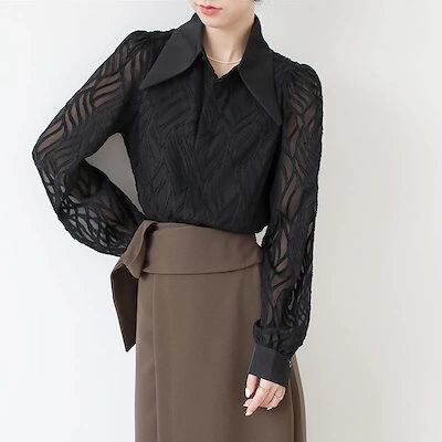 即納23人気新作シアーシャツ 韓国ファッションチェックトップス職業サテンシャツ服大きいサイズレディースシフォンシャツ黒白長袖ブラウス福袋