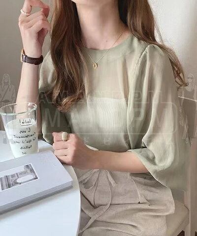 ブラウス トップス レディース セット インナー オシャレ シャツ ゆったり vネック 長袖 きれいめ 無地 可愛い 着痩せ 春 秋 夏 韓国風 可愛い 40代 夏 新作 大きいサイズ 入学式 オフィ | Jeannede ジャンヌデ