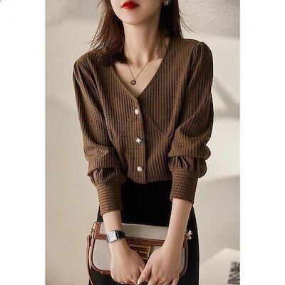 シアーシャツ 初秋 新作 長袖 ブラウス レディース 韓国ファッション 気質Vネック上品シャツ 百掛け ?? 長袖トップス大きいサイズゆったり ブラウス 通勤 インナー