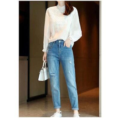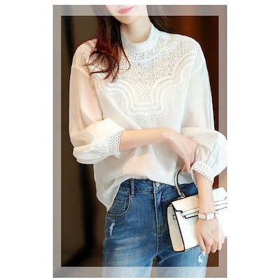 ブラウス レディース きれいめ 40代 シャツブラウス 春 夏 秋 新作 オシャレ ブラウス 白 レース シャツ 長袖 トップス パフスリーブブラウス 大人 通勤 ゆったり シャツ 可愛い OL 日常