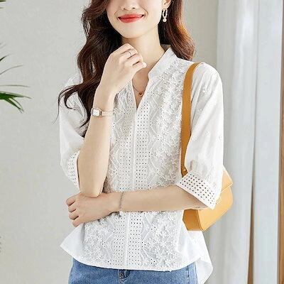 今っぽシアーシャツ カーディガン法式?花?衫女五分袖2024夏季新款漂亮??小衫上衣小??致?衣 ブラウス オフィス シャツ 長袖 レディース 韓国 リピ一ト率が高い