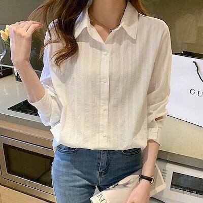 韓国長袖ブラウス ファッション コットンホワイトシャツ 新作ゆったりトップスコットン 今っぽシアーシャツ 長袖 ブラウス レディース オフィス シャツ カーディガン