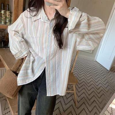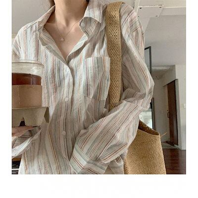 ストライプシャツレディース夏の新作2024韓国版ゆったりとしたデザイン感のある小人数シャツ百合長袖トップスファッション