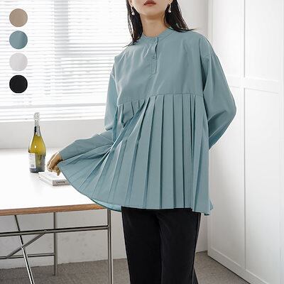 Tシャツレディース長袖新商品4色春秋ゆるいシンプル純色タックシャツレディースセミロングタイプのシャツ