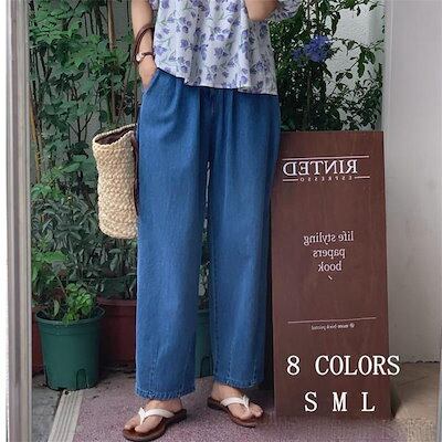 パンツ デニム ジーンズ 美シルエットハイウエストワイドデニムパンツ レディースボトムス チノパンツ 綿 イージーパンツ バックゴム 低身長 コクーンパンツ
