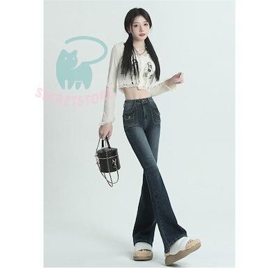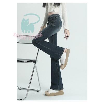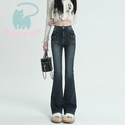 デニム パンツ レディース ボトムス 美脚 チノパン ラッパ ハイウエスト ワイドパンツ パンツ 体型カバー 春 夏 秋 ジーパン 20代 30代 40代 カジュアル