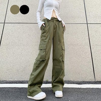 ワイドパンツ バギーパンツ パンツ ロングパンツ カーゴパンツ チノパンツ レディース ゴム ズボン ボトムス 着痩せ 楽ちん 春 夏 S M L 2L今日は30パーセント