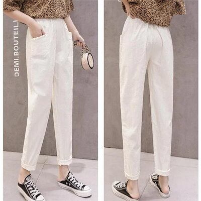 【急速出荷】チノパン サルエルパンツ ボトムス レディース 九分丈 ガウチョパン カジュアル 着痩せ ウエストゴム リネン 普段着 綺麗 ルームウェア