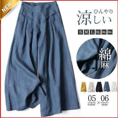 (さくらショップ1!)ワイドパンツ レディース パンツ チノパン リネン バギーパンツ ガウチョパンツ ズボン ロング ワイドパンツルック 綿麻 大きいサイズ リラックス