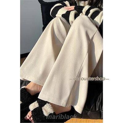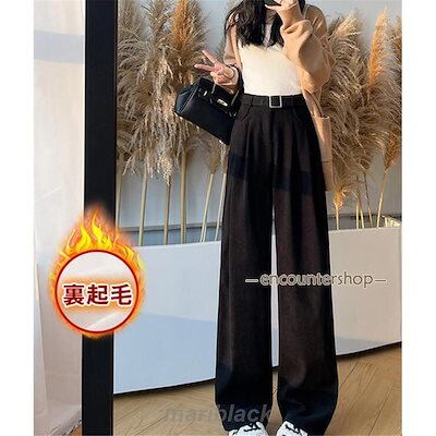 ワイドパンツ レディース 裏起毛 ストレート チノパン スラックス ガウチョパンツ ハイウエスト ゆったり ルーズ 防寒 着痩 冬服 暖か 通勤 通学