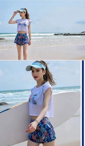 新作水着 レディース水着 3点セット水着 レディース 半袖水着 レディースラッシュガード スポーツバラ+ショートパンツ+ワイドパンツ タンキニ 大人水着 ママ水着 体型カバー 海 プール ビーチ旅行 | Jeannede ジャンヌデ
