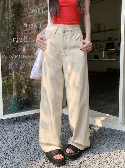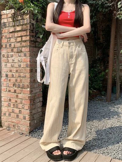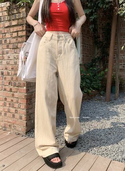 2025春夏パンツ デニム ジーンズ ロング丈 ワイド ストレート ハイウエスト 美脚効果 脚長効果 細見え 夏 白 黒 青 韓国ファッション レディース かわいい おしゃれ カジュアル お出かけ