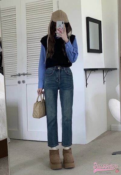 パンツ デニム ジーンズ ワイド ストレート ハイウエスト 脚長効果 美脚効果 細見え ウォッシュ加工 春 カジュアル 韓国ファッション レディース お出かけ