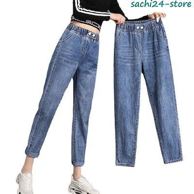 サルエルパンツ レディース ダメージ デニムパンツ サーカスパンツ ウエストゴム 九分 ガウチョ ワイドパンツ 体型カバー ゆったり カジュアル
