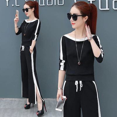 新品 大人気 セットアップ レディース ワイドパンツ ガウチョパンツ トップス 二点セット ボトムス スウェット 上下セット orange