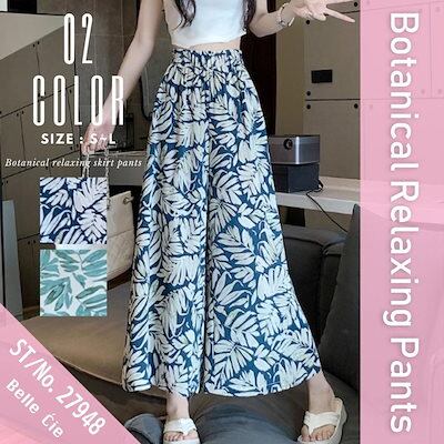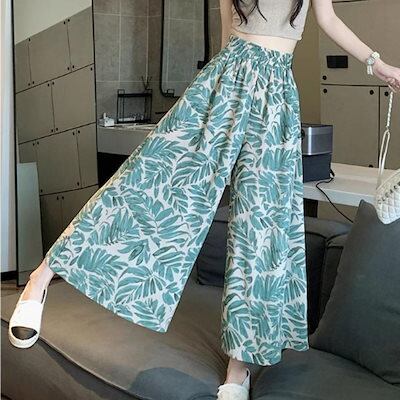 ガウチョ リラックスパンツ ウエストゴム ワイドパンツ フレア レディース 夏 韓国ファッション ボタニカル テロテロパンツ リゾート スカパン 柄