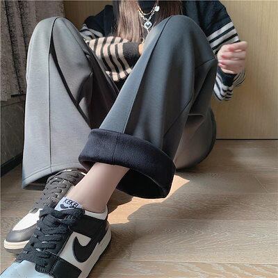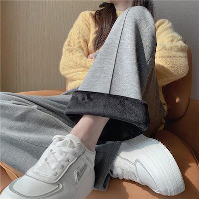 ガウチョパンツ レディース ワイドパンツ 裏起毛 ズボン ボトムス ハイウエスト 無地 普段着 カジュアル ゆったり 着痩せ ストレート ストリート系