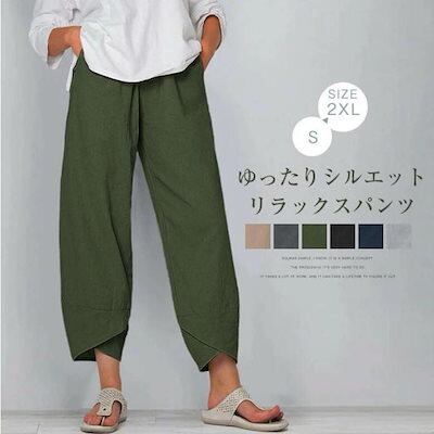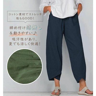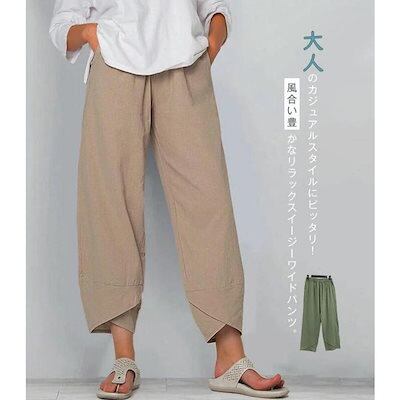 新品/数量限定/出荷が早いロングパンツ ワイドパンツ レディース 夏 9分丈 綿麻風 ガウチョ 大きいサイズ 体型カバー ゆったり カジュアル ナチュラル 可愛い オシャレ
